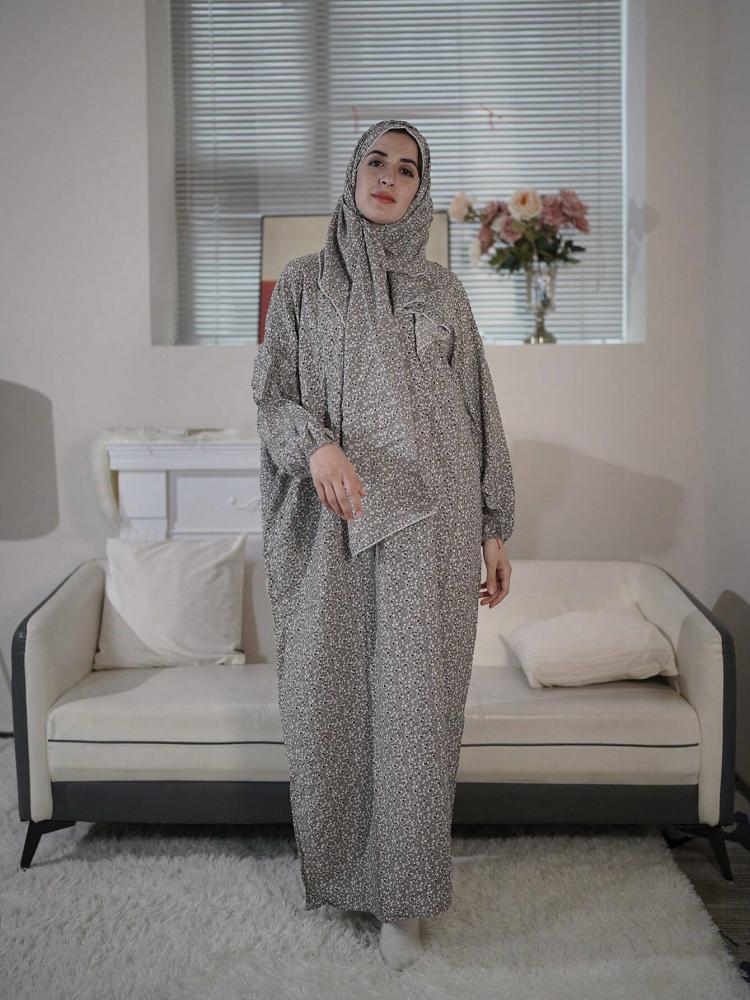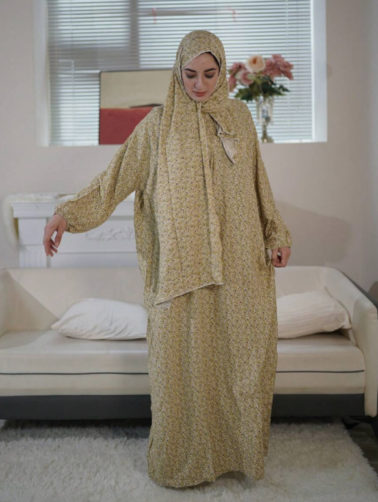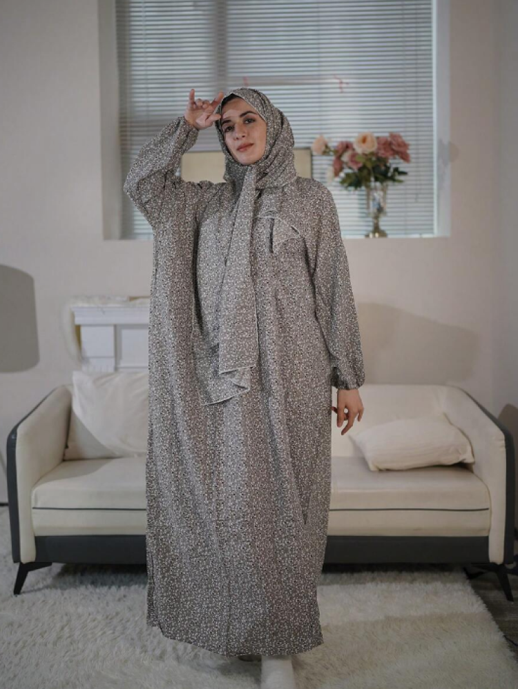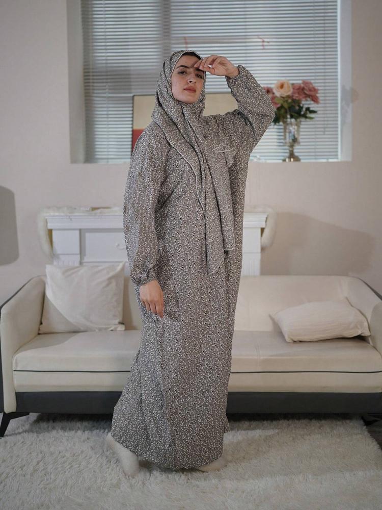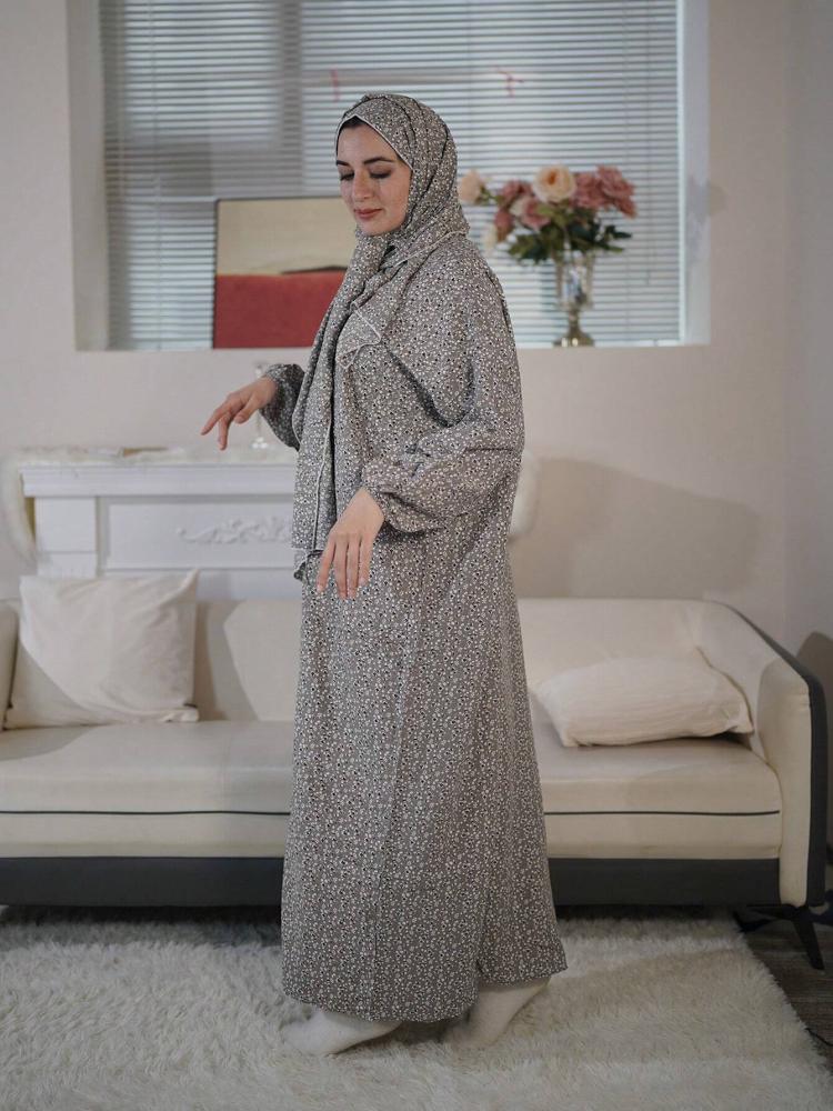- اسم المنتج: ثوب صلاة واسع مريح بطبعات أنيقة مع وشاح مدمج