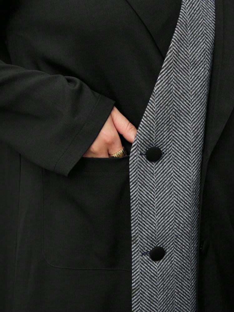 - التصميم: بياقة بليزر وأزرار أمامية