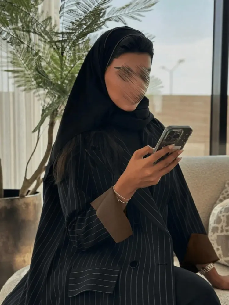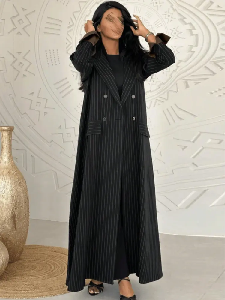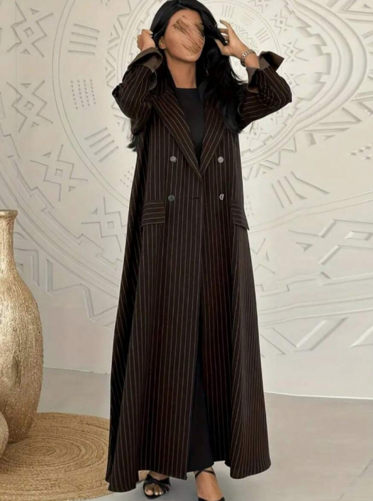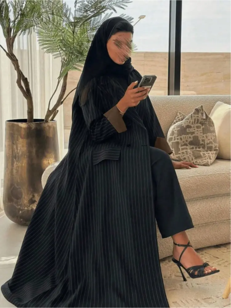 - عباية مخططة تصميم خطوط دقيقة يضيف أناقة عصرية لإطلالتك
