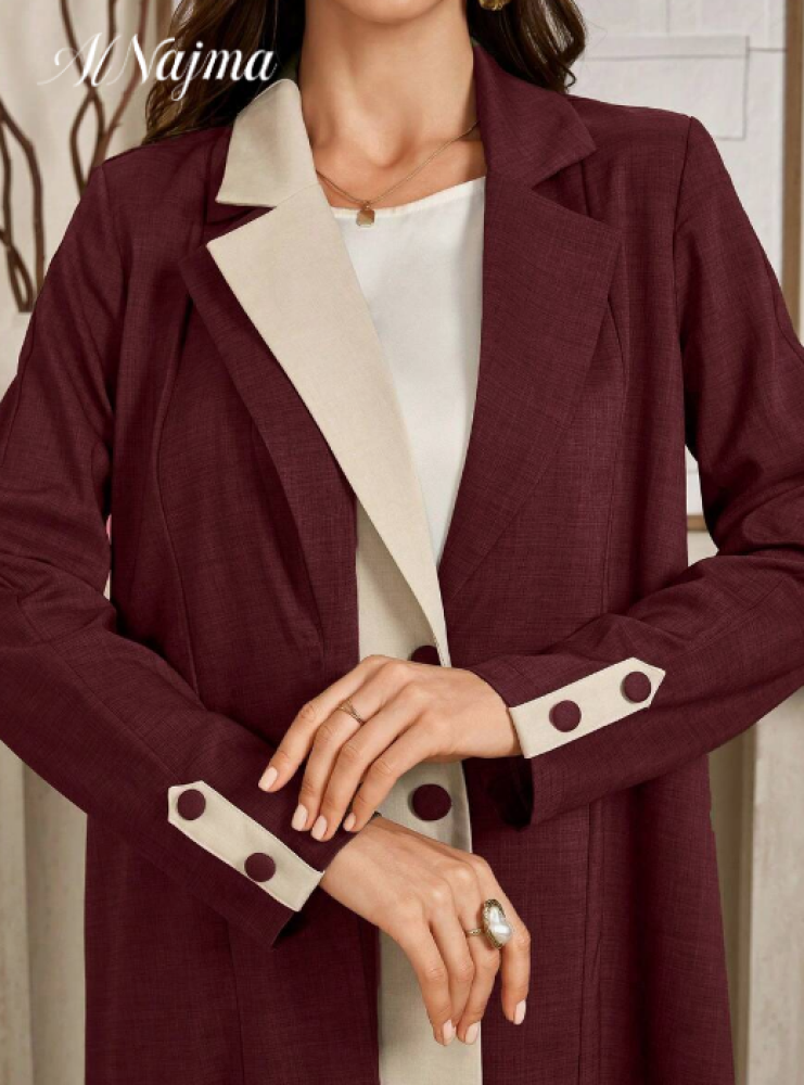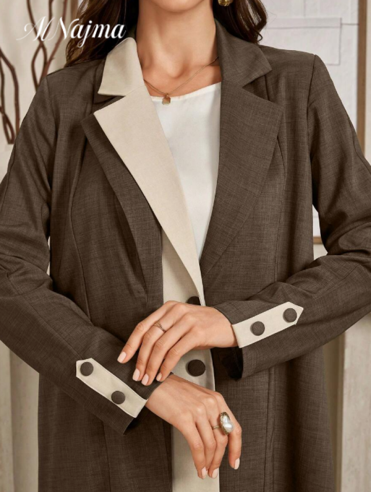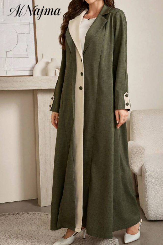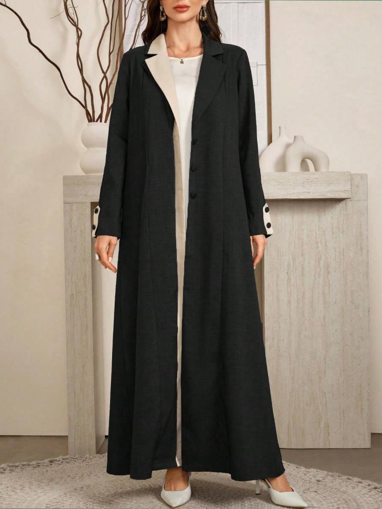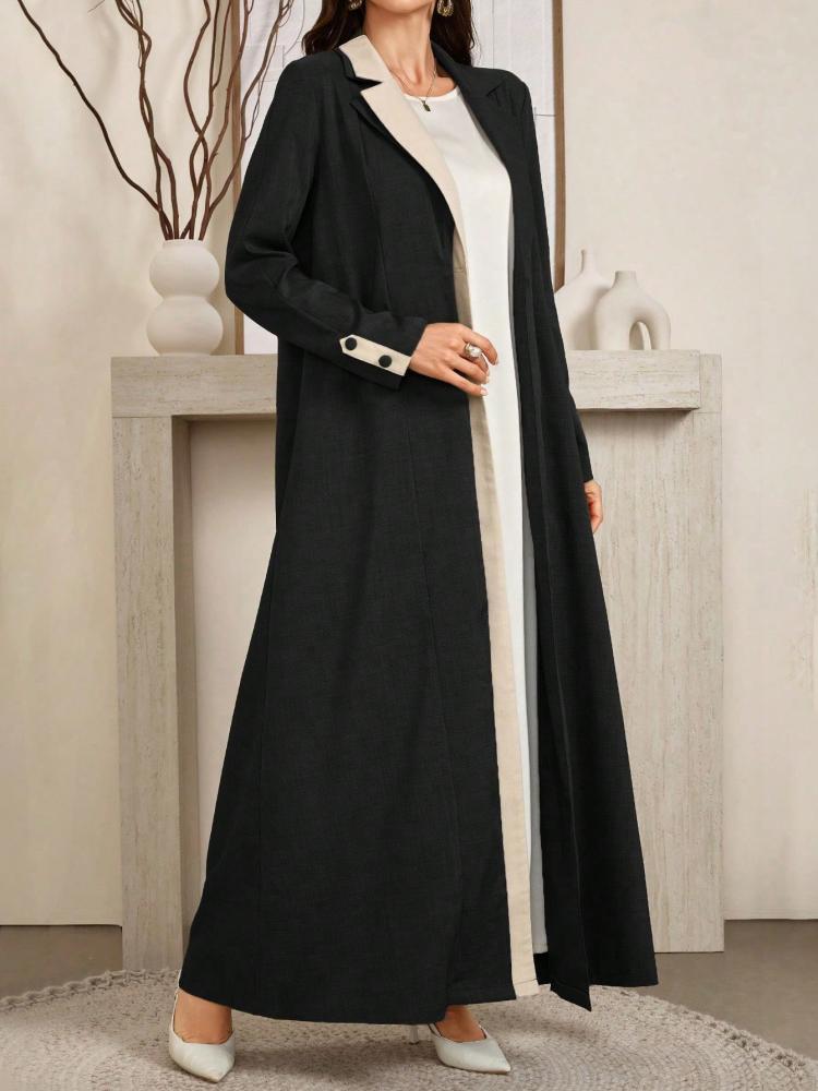 - اسم المنتج: عباية معطف طويل أنيق للنساء بلون متباين أحادي