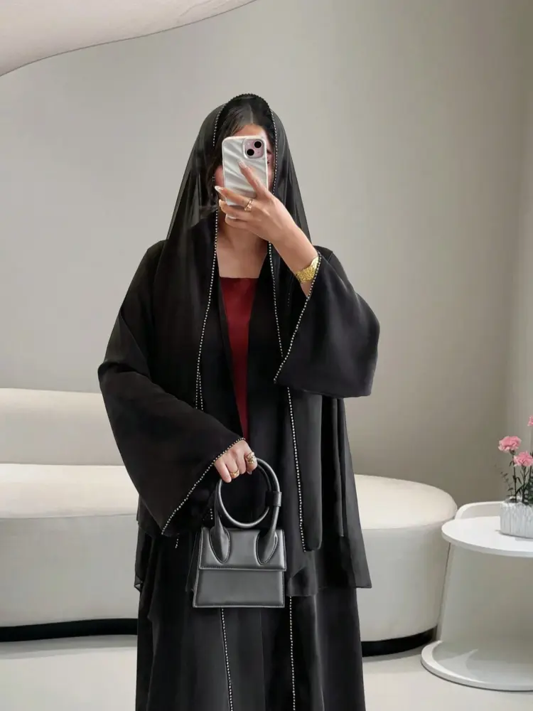 • اسم المنتج: عبايات مزينة بتطريز بلورات وحجاب للنساء